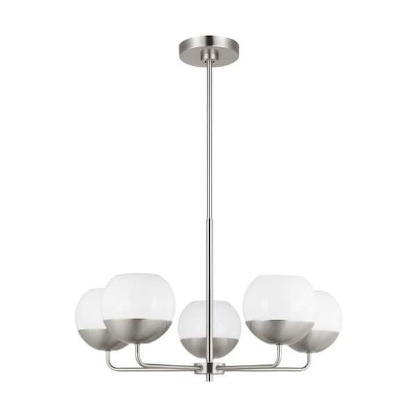 Alvin 5-Light Brushed Nickel Chandelier with Milk Glass Shades