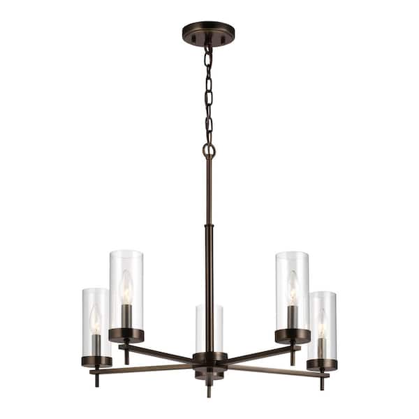 Studio Zire 5-Light Oil Rubbed Bronze Candlestick Chandelier with Clear Glass Shades and Dimmable Candelabra LED Bulbs