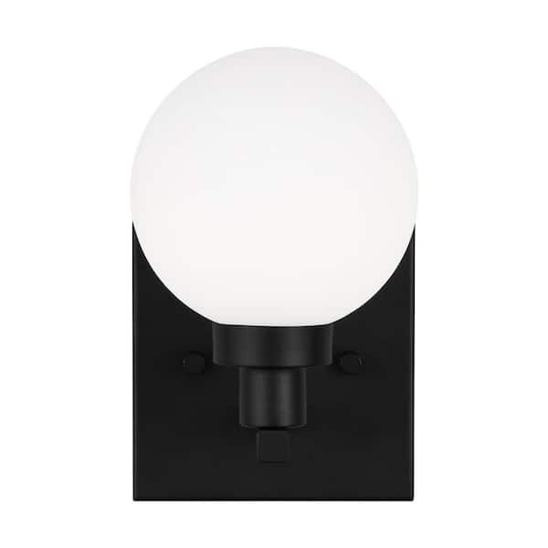 Studio Clybourn 1-Light Midnight Black Wall Sconce with Milk Glass Shade
