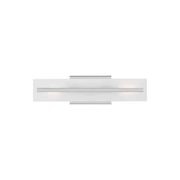 Dex 17.875 in. Small 2-Light Chrome Vanity Light with Satin Etched Glass Shade