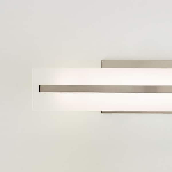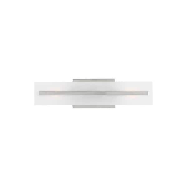 Studio Dex 17.875 in. Small 2-Light Brushed Nickel Vanity Light with Satin Etched Glass Shade