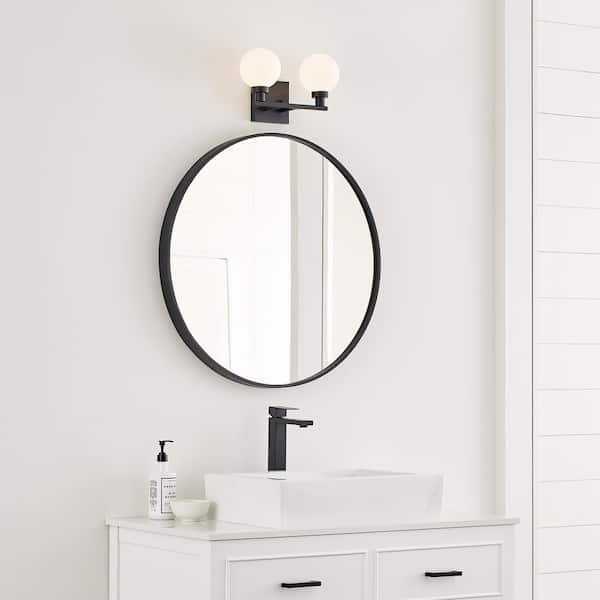 Studio Clybourn 13.25 in. 2-Light Midnight Black Vanity Light with Milk Glass Shades