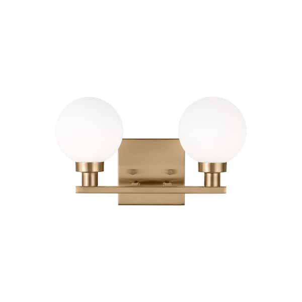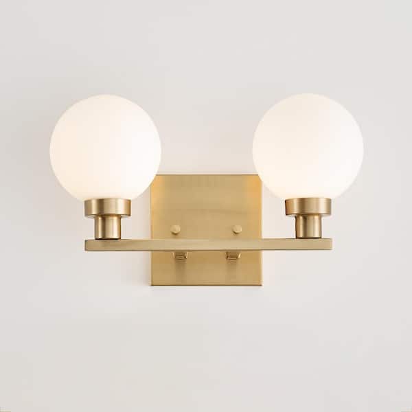 Studio Clybourn 13.25 in. 2-Light Satin Brass Vanity Light with Milk Glass Shades
