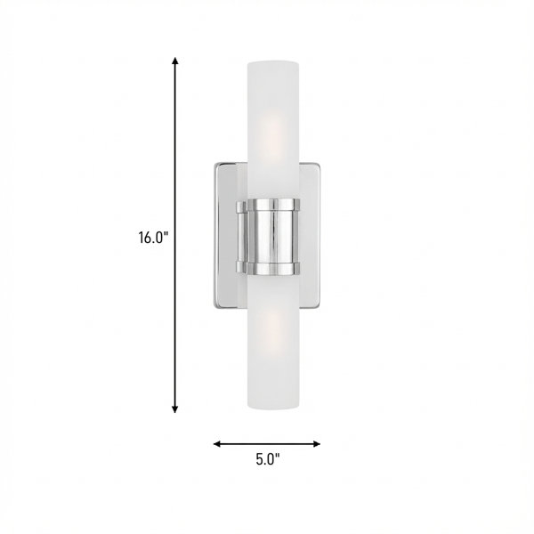 Sleek and modern, this 2-light bath series pairs a square backplate with a tubular etched opal glass shade. The two-light vanity fixture provides abundant light for your bath vanity while adding a layer of today's style to your interior design.