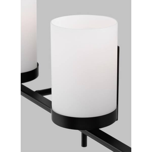 Studio Zire 34 in. 4-Light Midnight Black Bathroom Vanity Light with Etched White Glass Shades with LED Bulbs