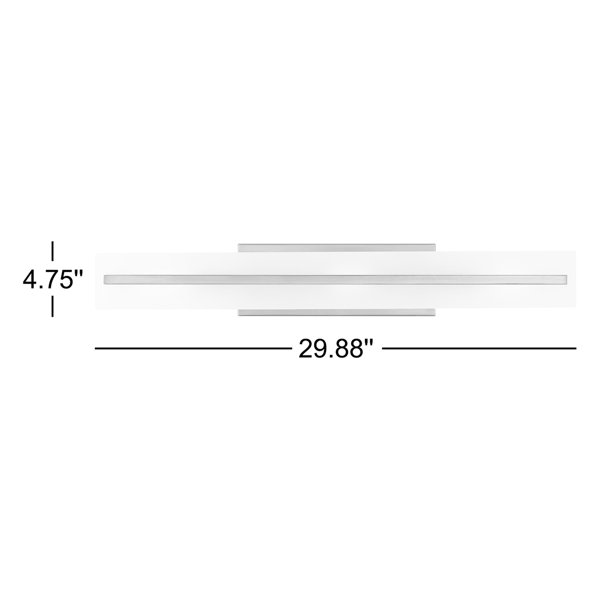 Drawing on ultra-modern designs, this 2-light vanity fixture brights up any wall with an updated look. Crafted from stainless steel, this piece features a clean-lined rectangular backplate and a short arm with cylindrical fittings. A panel of frosted glass with a shiny strip of steel in the middle diffuses the light from two bulbs up to 60W, which is not included. This light is rated for damp spaces, so it can easily be used in a bathroom or anywhere it's exposed to indirect moisture. Plus, it's dimmable to get the lighting you want.