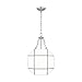 Collection: Morrison, Material: Steel, Finish Color: Brushed Nickel, Width: 13.5", Height: 23.25", Length: 13.5", Chain Length: 72", Lamping Type: Incandescent, Number Of Bulbs: 3, Wattage: 60 Watts, Dimmable: No, Moisture Rating: Dry Rated, Desc: Featuring a lantern-like design with curved arms connecting to a cube-shaped frame, the Morrison pendant series by makes a perfect statement piece over a kitchen counter or dining table. This versatile design comes in Small, Medium or Large Lantern sizes, plus Small and Large Flush Mount. It is available in Clear or White Glass with Antique Nickel, Brushed Nickel or Satin Brass finish. Morrison is supplied with wire pre-laced through chain and sloped ceiling mounting hardware to customize your installation. Product Features and Benefits From the brand formerly known as Sea Gull Lighting / Contemporary, transitional, damp-rated fixture will complement any dining room, kitchen, or foyer / Sloped ceiling compatible with all mounting hardware included plus 72'' of chain for customizable hanging height / Includes (3) 3.5-watt fully dimmable Torpedo Candelabra LED light bulbs for eco-friendly lighting. ,