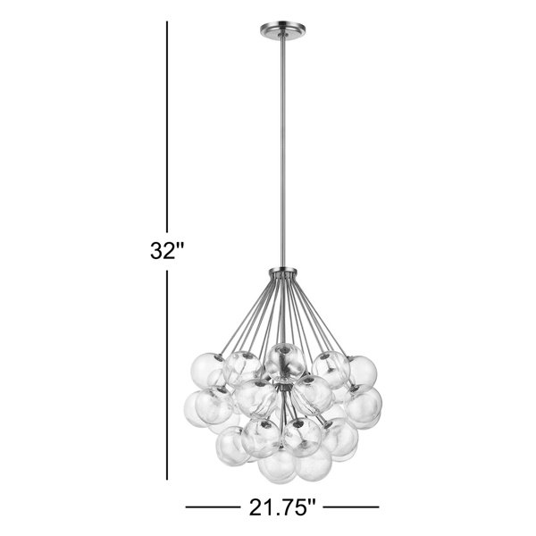 The glass globes show crisp clarity and depth, giving a bold sculptural vibe to the piece