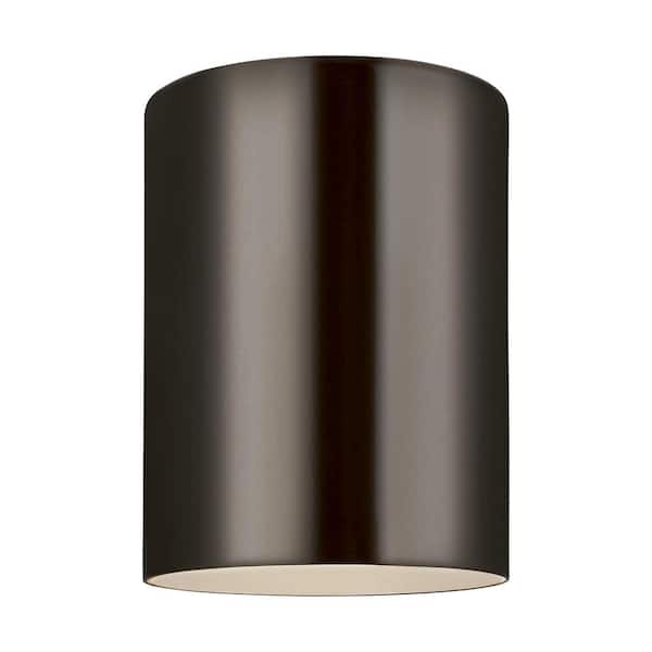 Outdoor Cylinders 6.625 in. Bronze 1-Light Outdoor Ceiling Flushmount with LED Bulb