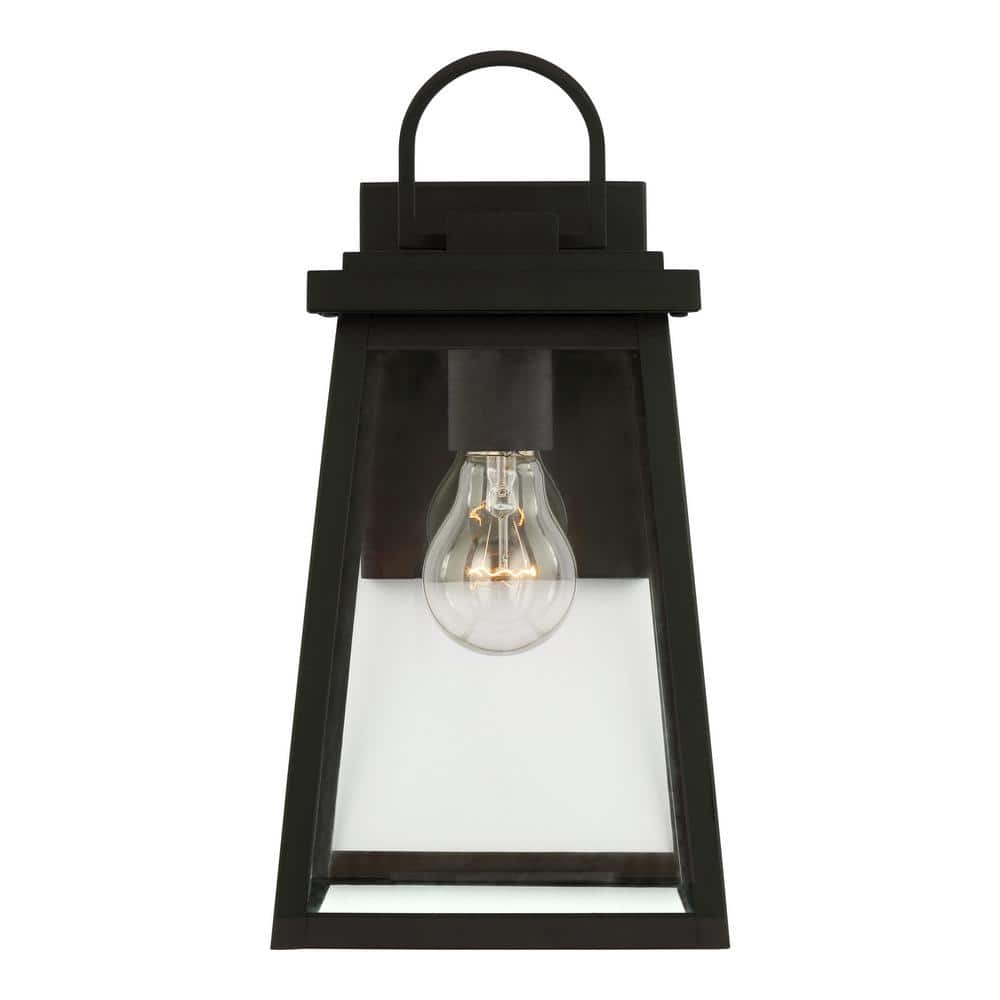The Generation Lighting oudoor wall lantern from the Founders collection by Visual Comfort Studio features a modern style with a perfect square shape. Generation Lighting wall lanterns collection, you can feel comfortable knowing that this light is safe under your coverd stoop, terrace or veranda during a storm. This outdoor wall lantern head uses an input voltage of 120V and measures 8.25 inches in height. Generation Lighting outdoor wall lantern is perfect for illuminating your poolside dining set or casting a warm and welcoming glow on the front porch. This LED outdoor wall light delivers 800 lumens at color temperature. Provides color rendering at a CRI of. LED fixtures are more energy efficient and last much longer than traditional incandescent versions.