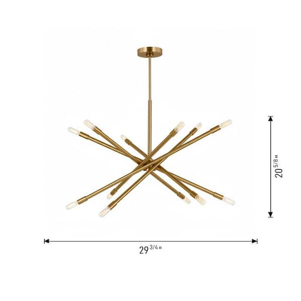 Eastyn Large 12-Light Burnished Brass Sputnik Chandelier