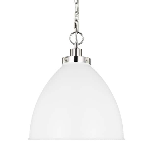 Wellfleet 15.625 in. W x 13.5 in. H 1-Light Matte White/Polished Nickel Medium Dome Pendant Light with Steel Shade