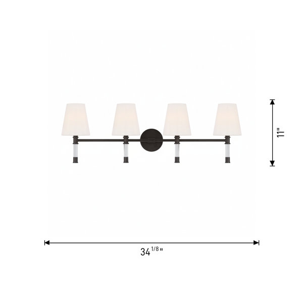 In the four-light wall vanity, lucite arms form an elegant, dynamic silhouette that stems from a hub finish and extends to matching color candle tubes, topped with exposed candelabra bulbs. Round backplate.