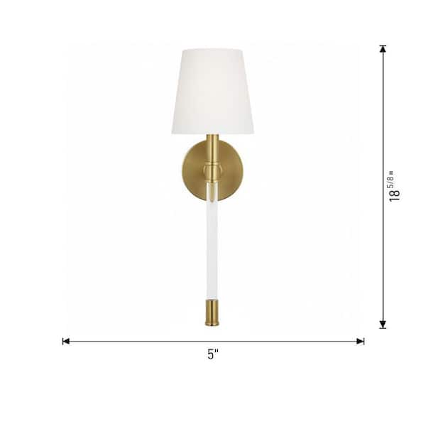 Hanover 1-Light Burnished Brass Wall Sconce with White Linen Fabric Shade