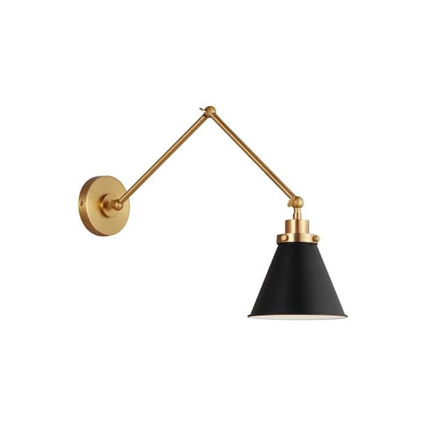 Wellfleet 7.25 in. W 1-Light Midnight Black/Burnished Brass Double Arm Cone Task Wall Sconce with Steel Shade