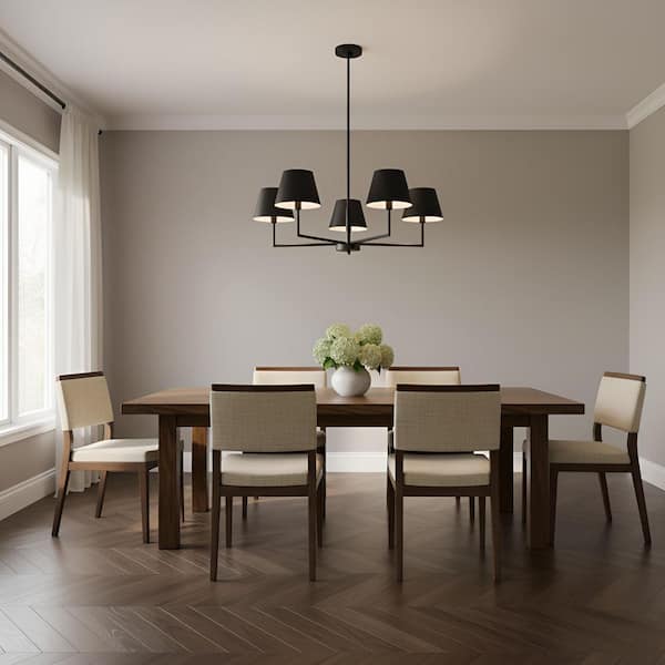 Ender 32.63 in. W x 10.5 in. H 5-Light Midnight Black Modern Chandelier with Steel Shades and No Bulbs Included