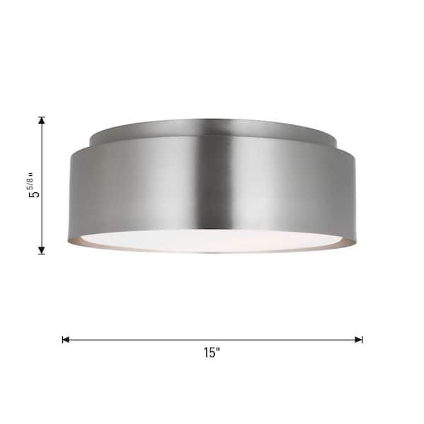 Dartmore 15 in. W x 5.625 in. H 2-Light Brushed Nickel Modern Flush Mount with Steel Shade and No Bulbs Included