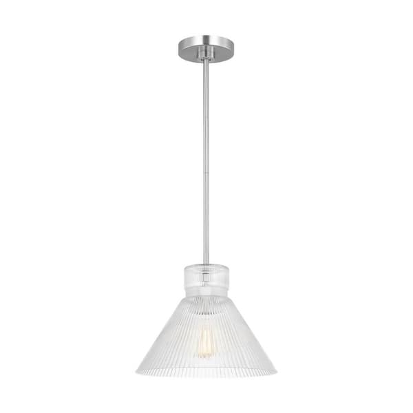 Liouet 12 in. W x 9 in. H 1-Light Brushed Nickel Transitional Pendant Light with Clear Ribbed Glass Shade