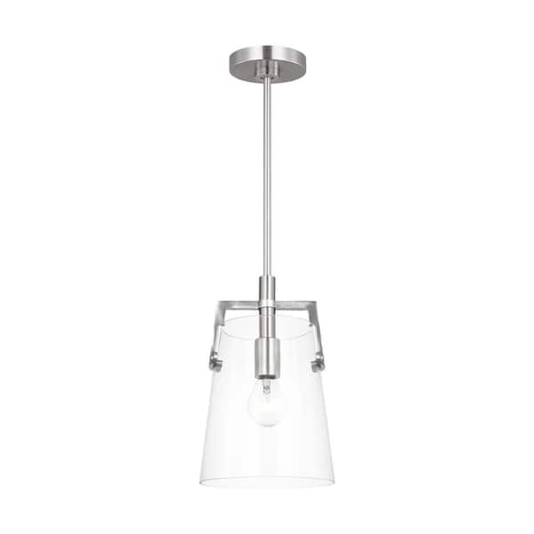 Crofton 7.75 in. W x 12.25 in. H 1-Light Brushed Nickel Modern Pendant Light with Clear Glass Shade No Bulb Included