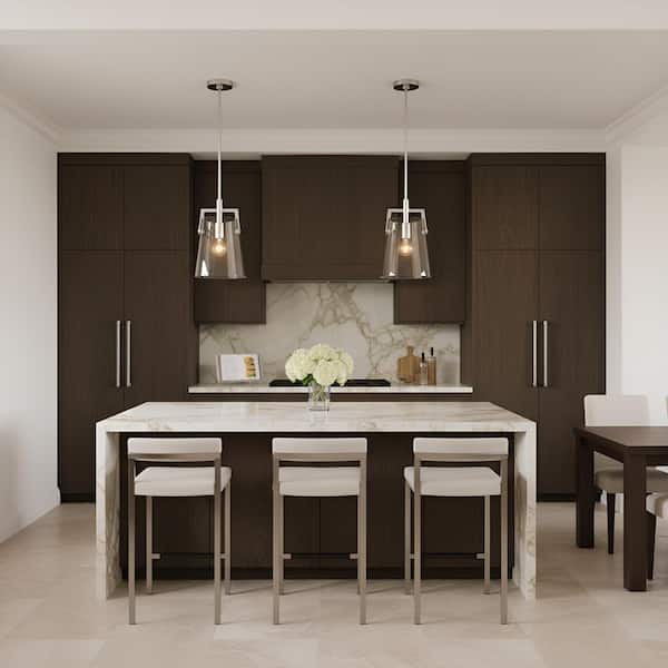 • Brushed nickel finish with clear glass shade