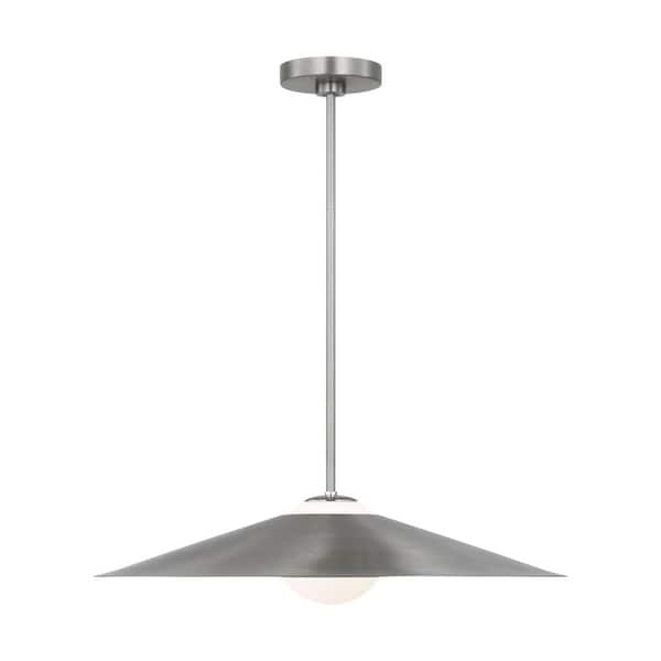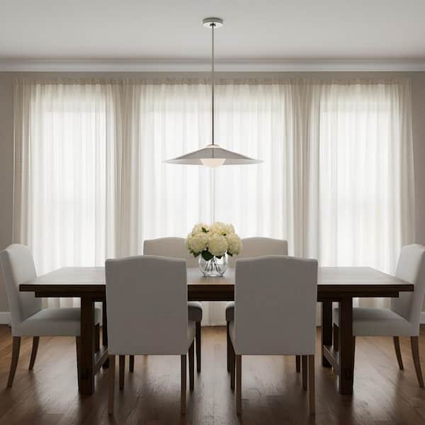 Astra 24 in. W x 5.75 in. H 1-Light Brushed Nickel Modern Pendant Light with Steel and White Opal Etched Glass Shade