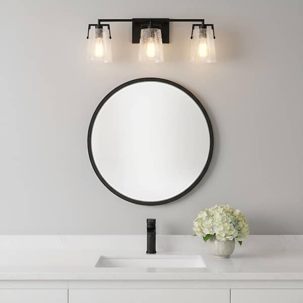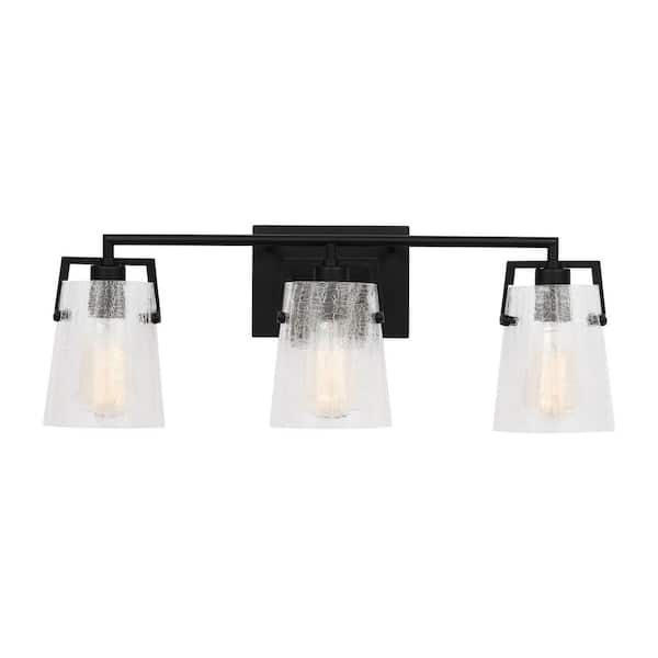 Crofton 24 in. W x 9 in. H 3-Light Midnight Black Bathroom Vanity Light with Clear Crackle Glass Shades