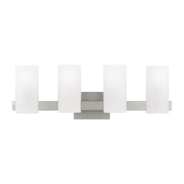 Rhode 27 in. 4-Light Brushed Steel Extra Large Vanity Light with Etched Glass Shades