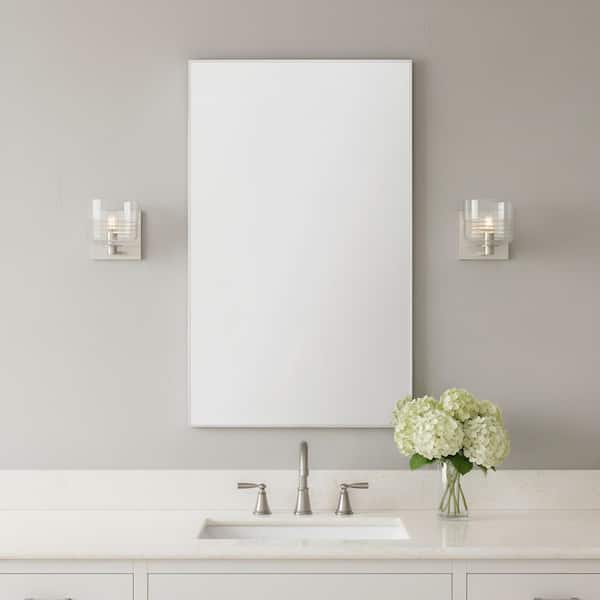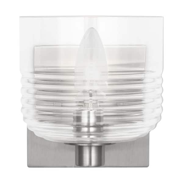 Lochdale Small 5.375 in. 1-Light Brushed Nickel Sconce Vanity Light with Clear Ribbed Glass Shade