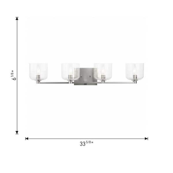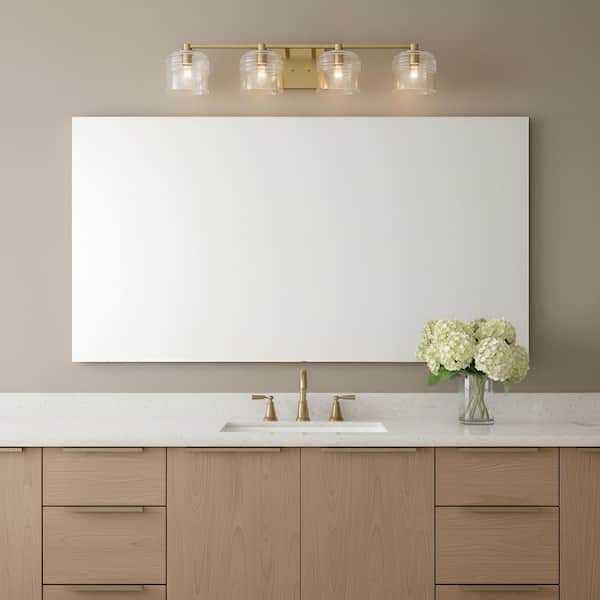 Lochdale Extra Large 33.625 in. 4-Light Satin Brass Vanity Light with Clear Ribbed Glass Shades