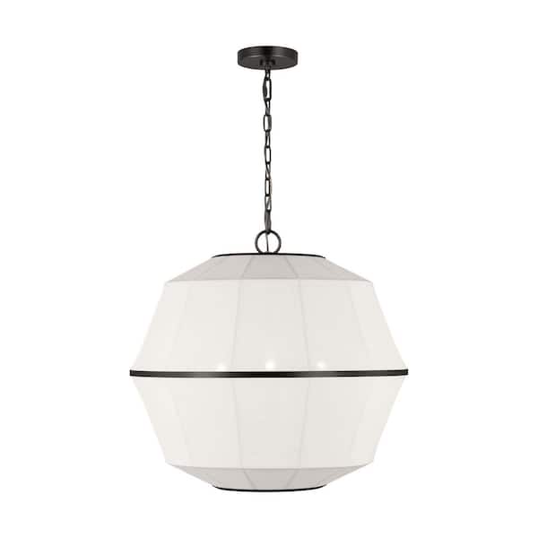 Hikari Medium 3-Light Aged Iron Dining Room Pendant Chandelier with White Linen Shade