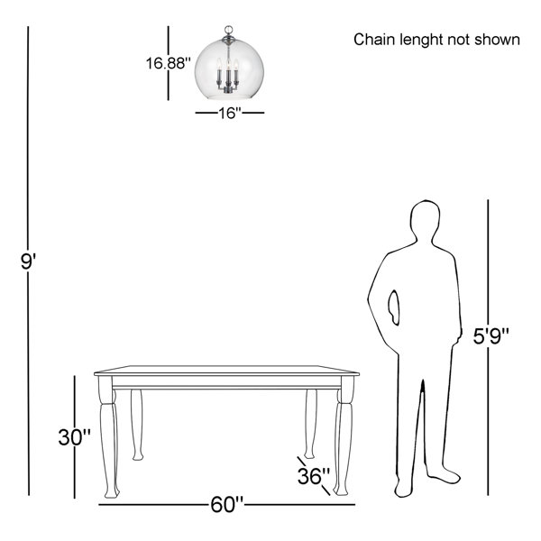 The clear globe keeps sightlines open, so the fixture reads light across the room
