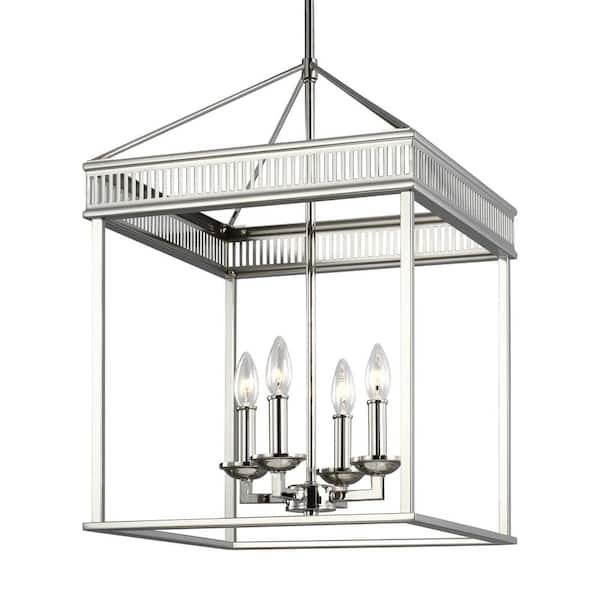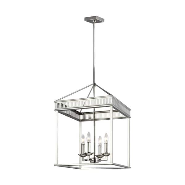 Studio Woodruff 4-Light Polished Nickel Modern Lantern Hanging Cage Candlestick Chandelier