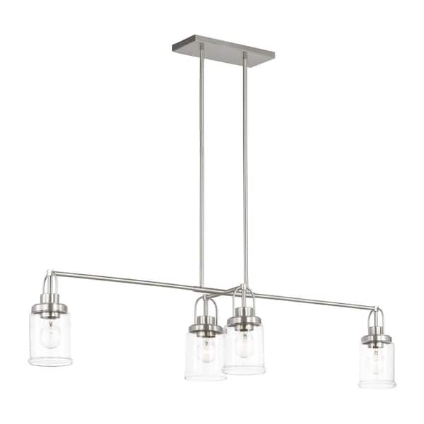 Anders 4-Light Brushed Nickel Linear Chandelier with Clear Glass Shades