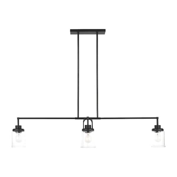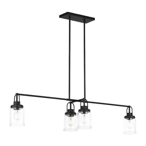 Anders 4-Light Midnight Black Linear Chandelier with Clear Glass Shades