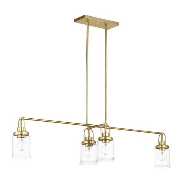 Anders 4-Light Satin Brass Linear Chandelier with Clear Glass Shades