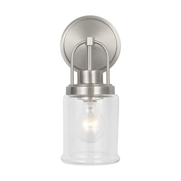 Studio Anders Small 4.75 in. 1-Light Brushed Nickel Bathroom Bedroom Wall Vanity Light with Clear Glass Shade