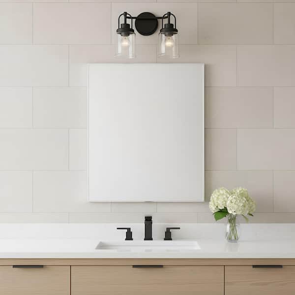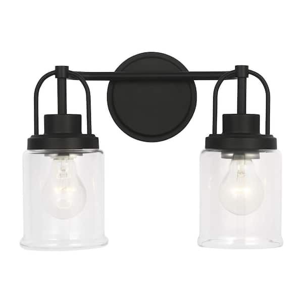 Studio Anders Medium 14 in. 2-Light Midnight Black Bathroom Bedroom Wall Vanity Light with Clear Glass Shades