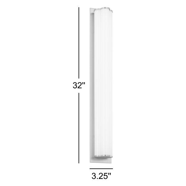 The Freya is a unique design by kate spade new york with three milk glass cylinders resting on a burnished brass back plate that can be placed vertically or horizontally. These wall lights are also technologically savvy, fitted with an integrated LED. With their sleek and chic design, the Freya vanity fixtures effortlessly complement any decor style, adding a dash of glamour to your dressing room, bathroom, or bedroom.