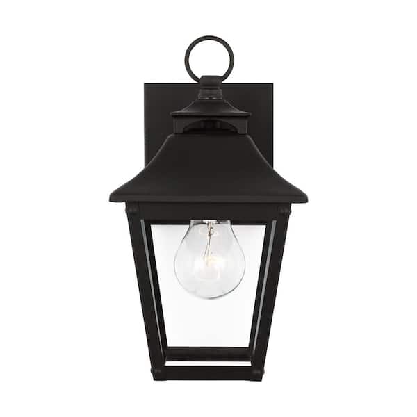 Galena Extra Small 1-Light Textured Black Outdoor Hardwired Wall Lantern Sconce with Clear Glass