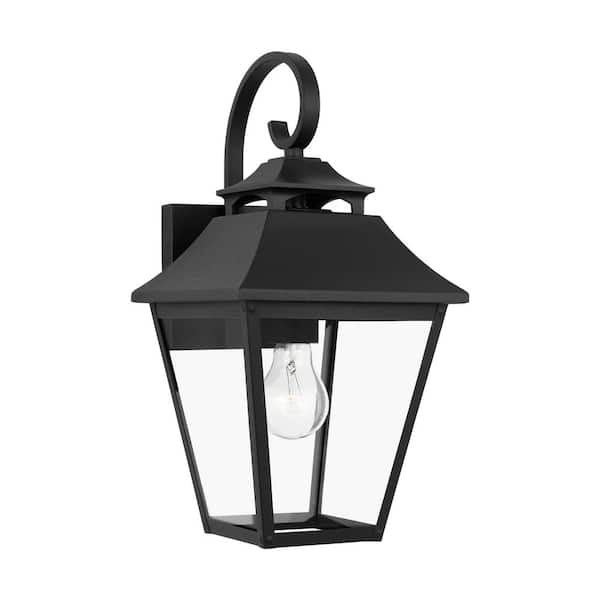 Galena 1-Light Textured Black Outdoor Small Wall Lantern Sconce with Clear Seeded Glass