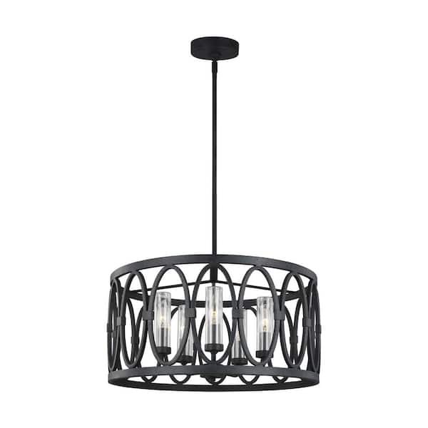 Patrice Small 5-Light Dark Weathered Zinc Industrial Outdoor Hanging Drum Candlestick Chandelier