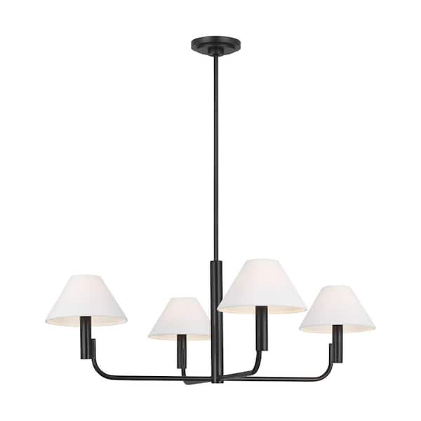 Studio Colfax Medium 4-Light Aged Iron Dining Room Chandelier With White Linen Shades