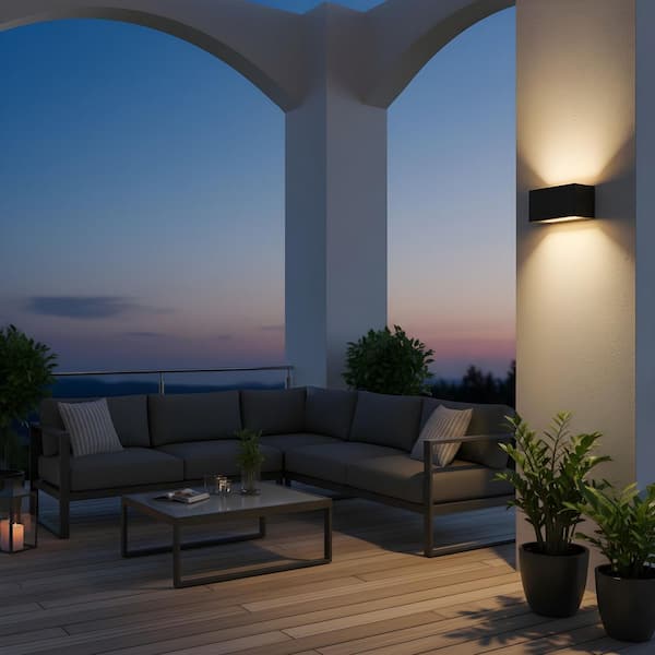 Studio Kukei Small 3.5 in. Textured Black StoneStrong Dark Sky Outdoor Hardwired Integrated LED Wall Lantern Sconce