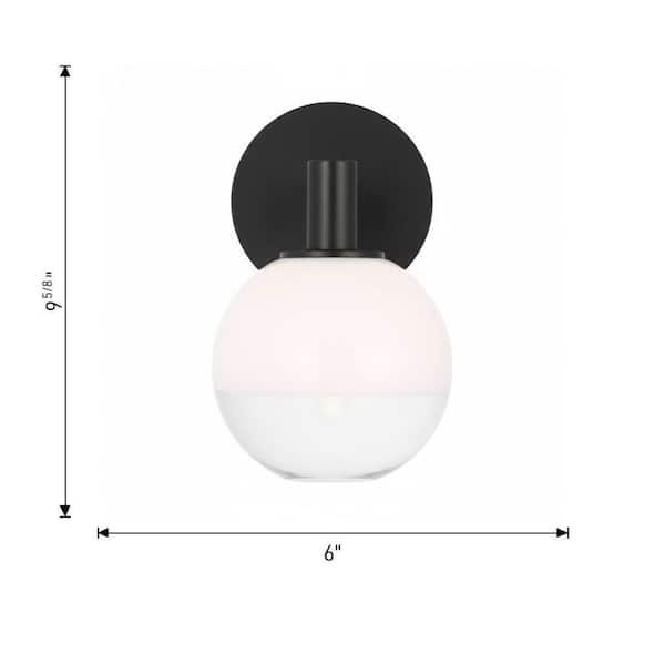 Torian 6 in. 1-Light Burnished Brass Bathroom Bedroom Wall Fixture Vanity Light With Milk Clear Glass Mix Shade