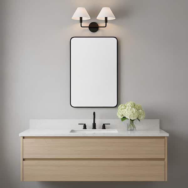 Studio Colfax Medium 2-Light Aged Iron Wall Sconce with White Linen Shades