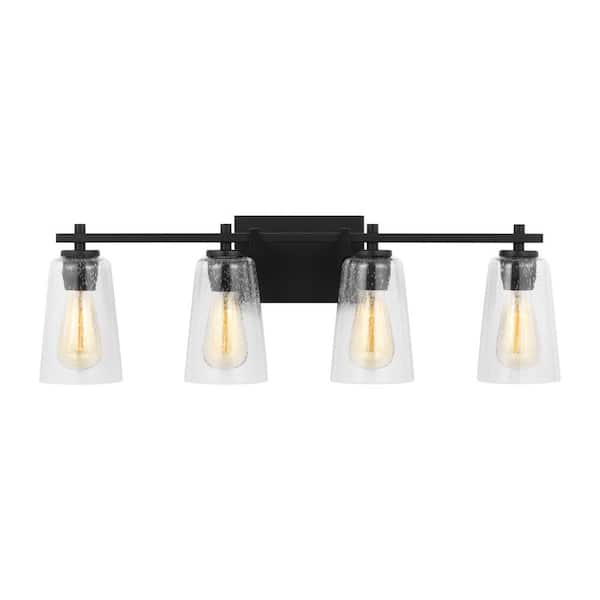 Mercer 28.625 in. 4-Light Midnight Black Traditional Vanity Light with Clear Seeded Glass Shades