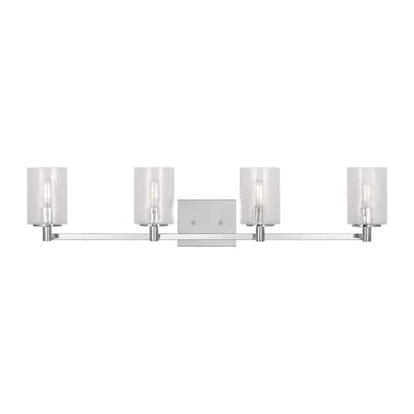 Parker 35 in. W x 7.75 in. H 4-Light Chrome Bathroom Vanity Light with Clear Crackle Glass Shades