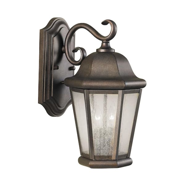 Martinsville 8 in. W 2-Light Corinthian Bronze Outdoor 14.5 in. Wall Lantern Sconce with Clear Seeded Glass Panels