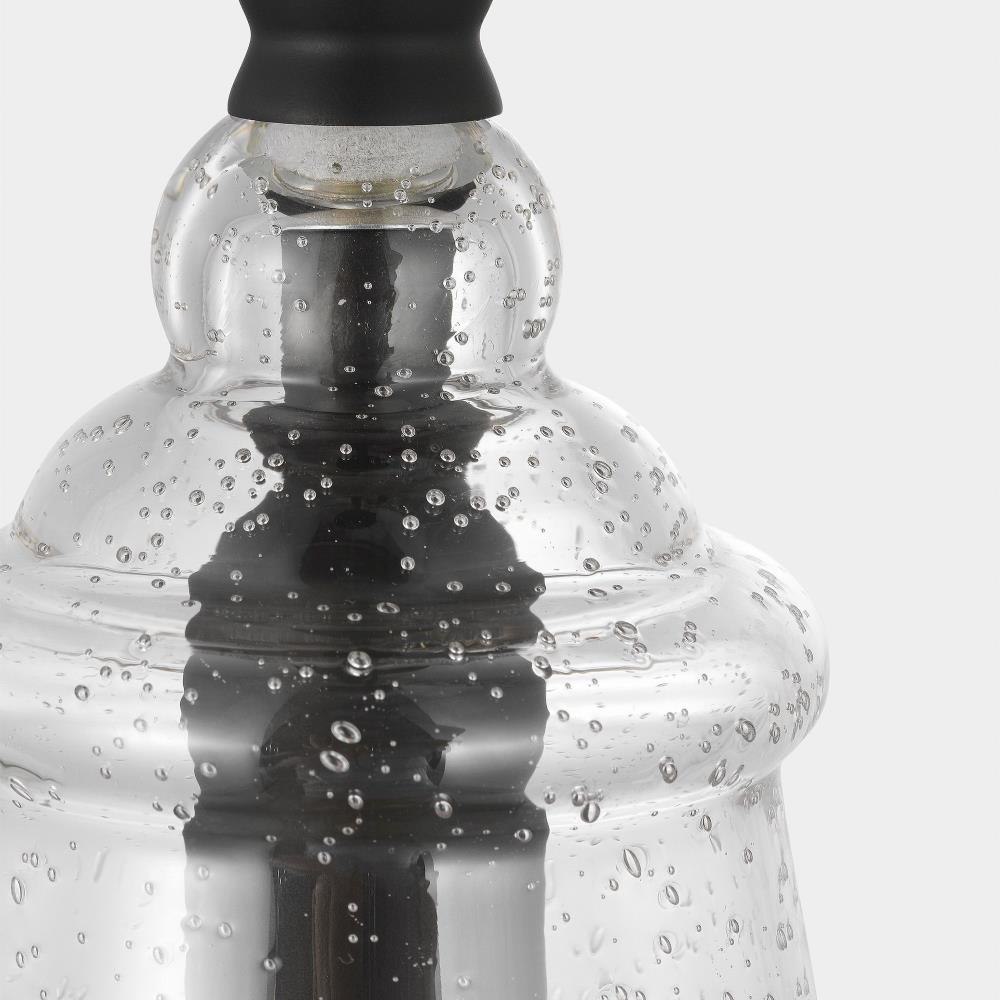 Loras is a contemporary take on historic, industrial designs. The transitional chandeliers feature multiple corded pendants beautifully suspended on either a Dark Weathered Iron or Chrome-finished frame. Clear Seeded glass shades on black fabric cords add dimension and charm to this vintage-inspired silhouette.Product Features and Benefits