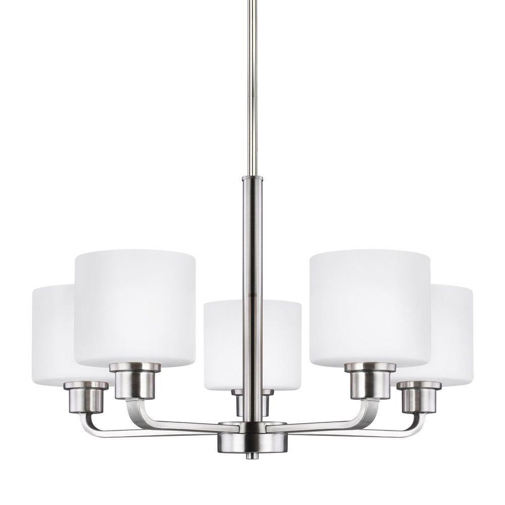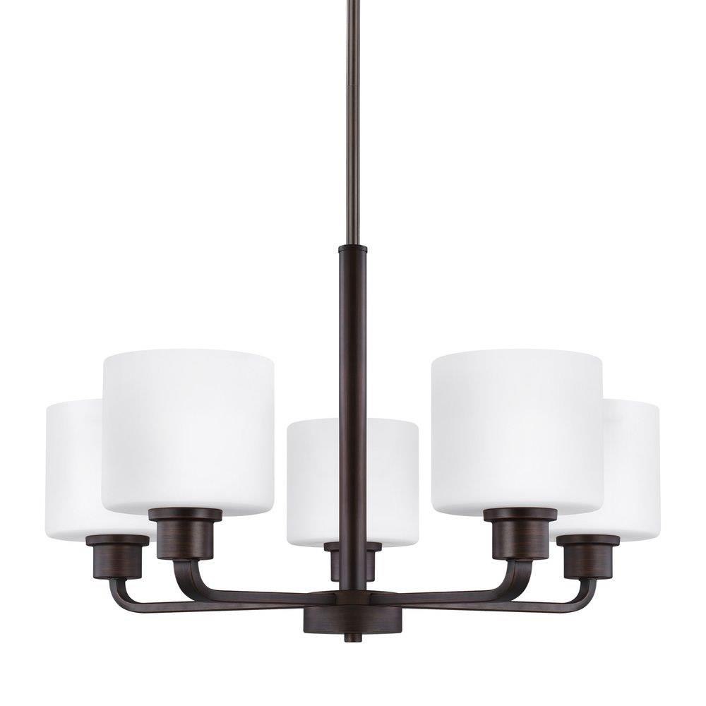 The Canfield five light single tier chandelier in bronze is an ENERGY STARĀ® qualified lighting fixture that uses LED bulbs to save you both time and money. Behind every seemingly simple design lies unerring attention to restraint and obsessive attention to the tiniest details. The Canfield collection by draws on the modernist traditions of "less is more". Essential functional elements dictate the aesthetics, and clean lines prevail. Layers of intricately finished hand-brushed steel progress vertically to the soft glow of light diffused through finely etched glass diffusors. Canfield offers a "whole home" lighting solution; offering lighting in every imaginable category from the auspicious 15 light 3-tier chandelier, to the concise mini-pendant and one-light sconces. The collection is available in hand brushed Burnt Sienna for a warm, tactile, almost Craftsman design style, or a brushed nickel to emphasize the more architectural elements of your interior.Product Features and Benefits